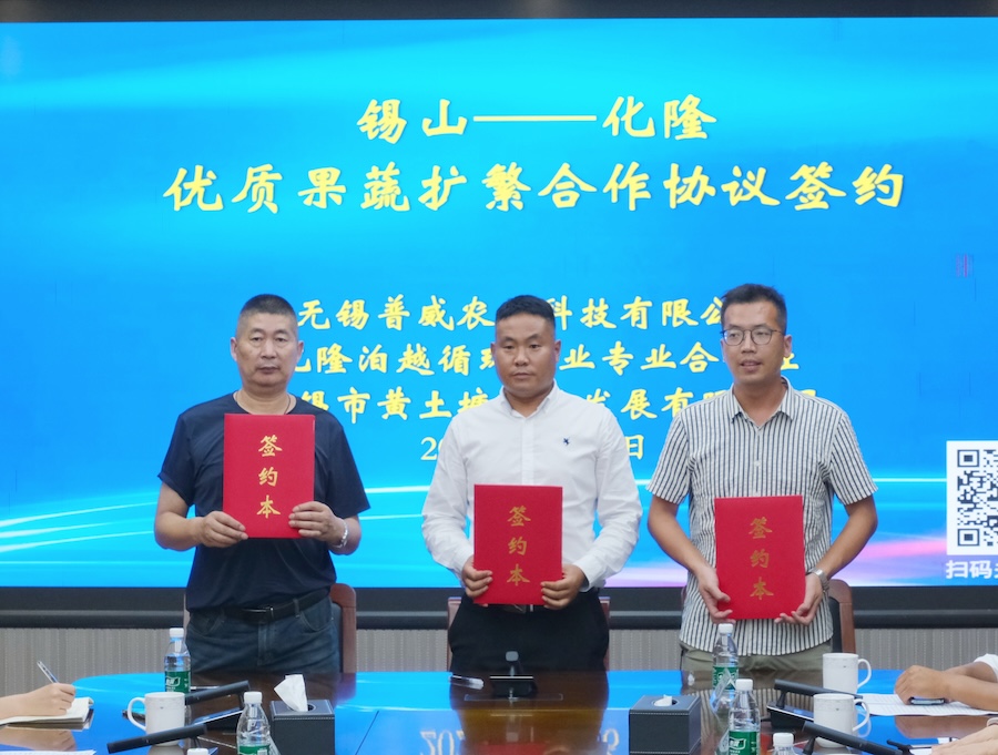 为推动锡山-化隆两地产业协作共建,进一步深化苏青协作,根据锡山区农业农村局与化隆县农业农村和科技局2024年8月签订的现代农业产业发展交流合作框架协议,9月26日,锡山--化隆优质果蔬扩繁合作签约仪式在锡山国家现代农业产业园召开。