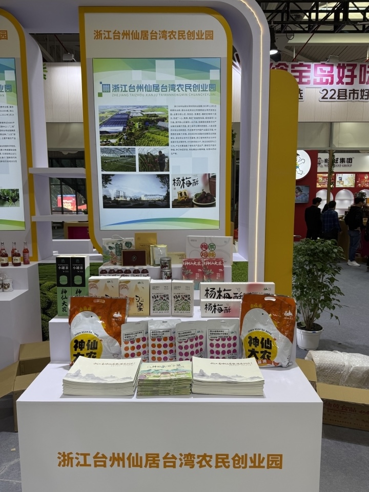 12月20—23日,2024年海峡两岸现代农业博览会·海峡两岸花卉博览会在福建漳州举行。仙居台湾农民创业园带着园内台商用台湾传统凤梨酥制作工艺制作而成的杨梅酥及三黄鸡、稻米、冬虫夏草等农产品参展。