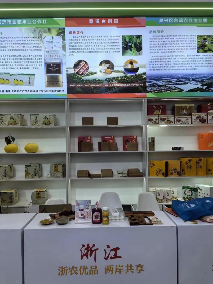 日前,2024年海峡两岸现代农业博览会·海峡两岸花卉博览会在福建漳州东南花都花博园开幕,慈溪台创园携园内台企亮相展会。展会期间,融合了慈溪与台湾两地特色的杨梅酥、杨梅汁等杨梅系列产品,专为轻食人群研发的甬鲜馔花椰轻食杯等产品受到了在场人员的一致好评。