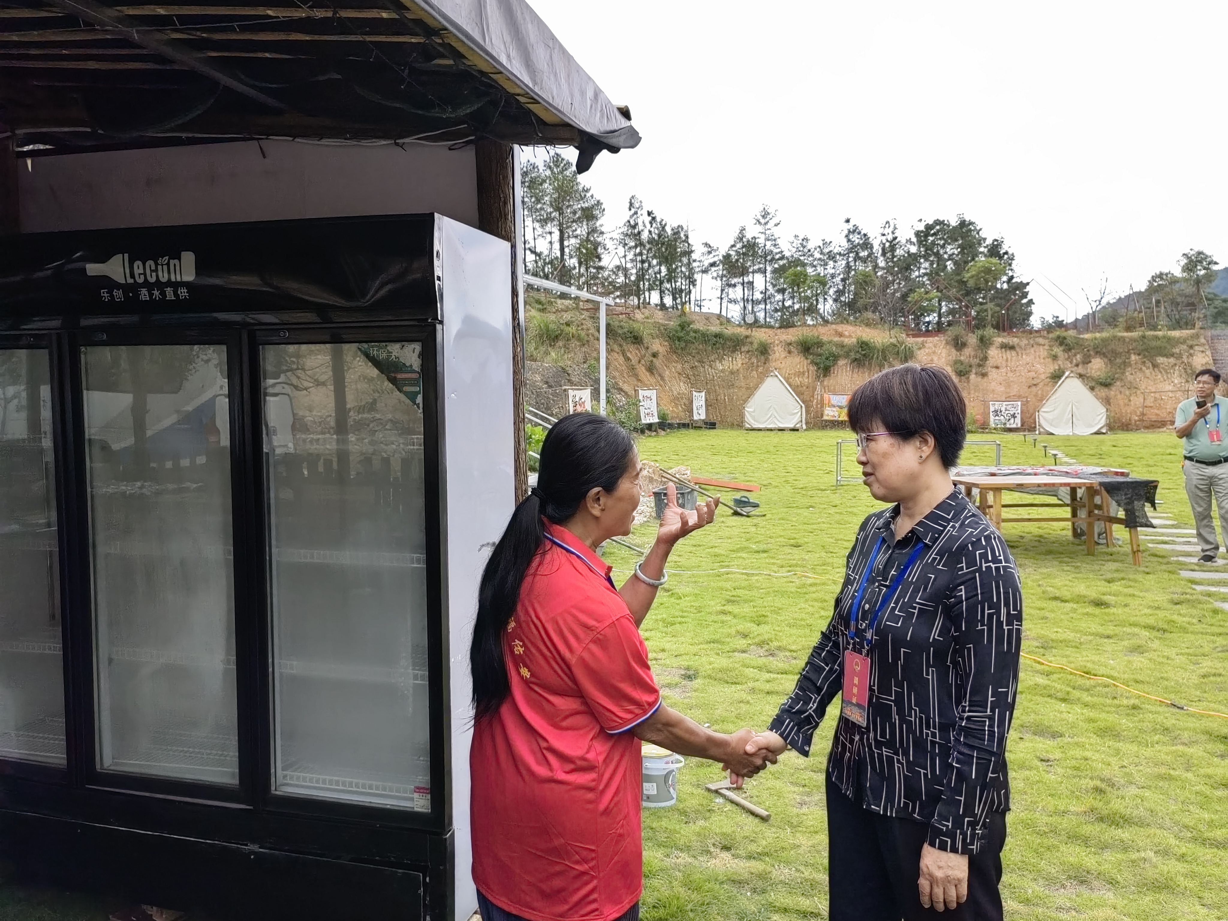 在好柿多生态休闲农场,“壶兰英才”陈勇舜向调研组汇报了甜柿种植项目与生态旅游相结合的企业经营状况。