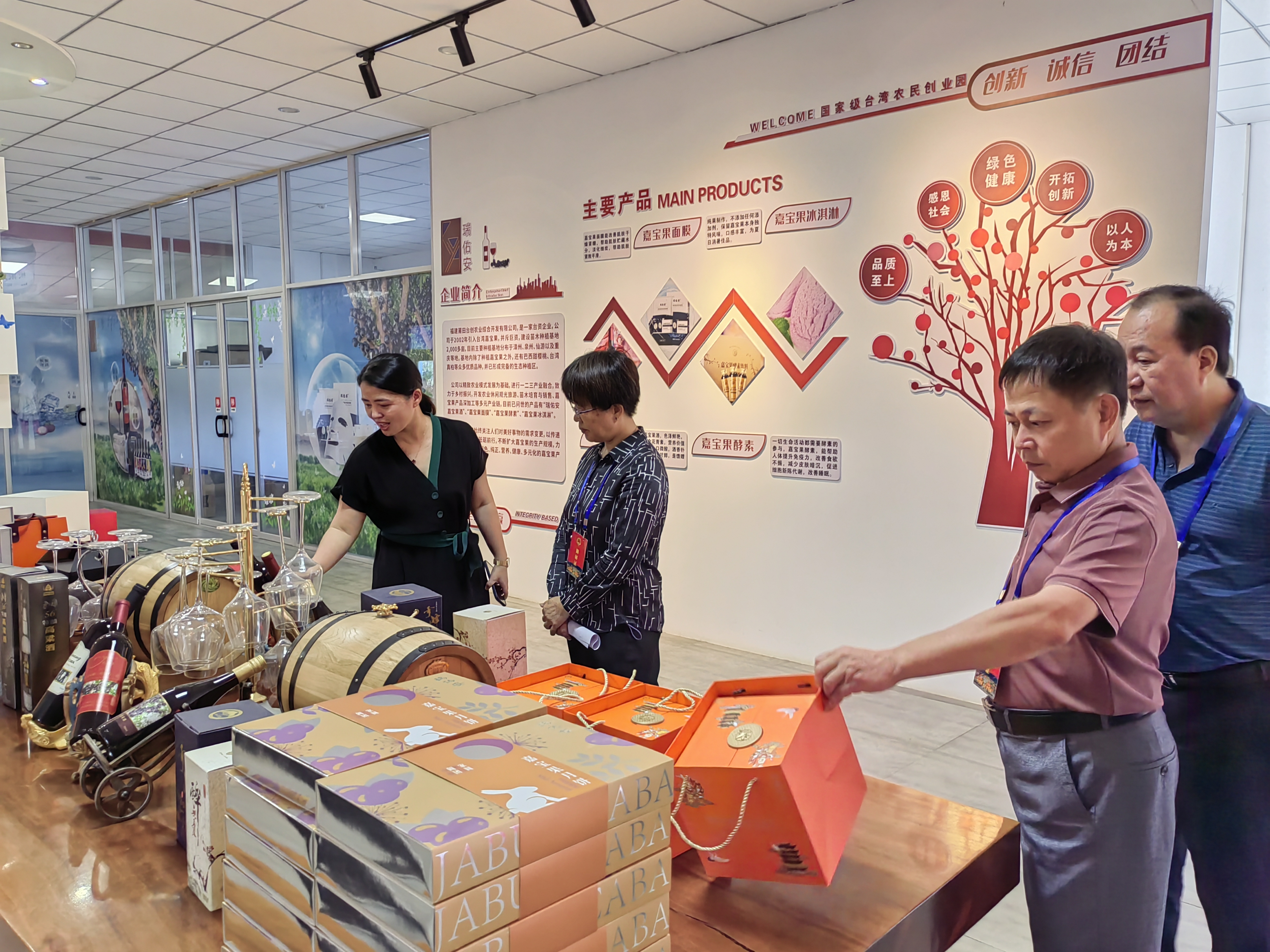 在福建莆田台创农业综合开发有限公司,领调研组参观了嘉宝果系列产品的研发与生产车间,台商叶丽清向到访来宾介绍了嘉宝果产品的研发销售近况。