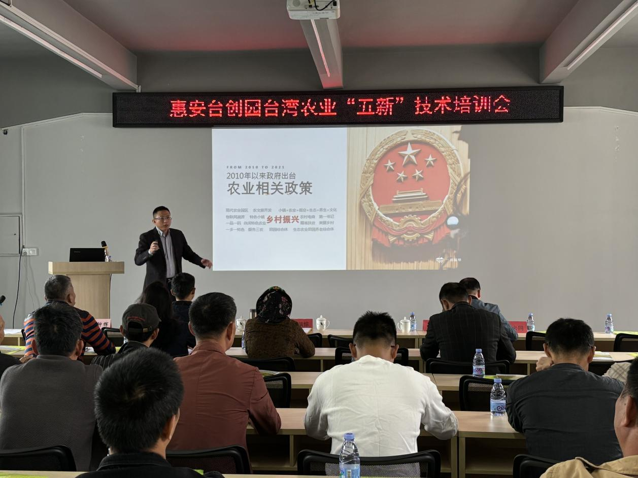 11月14日,惠安县台创园管委会邀请台胞黄靖悰博士在惠安县粮果蔬产业协会就台湾农业“五新”技术开展培训会,并组织园区台资企业及县相关农业企业参会。