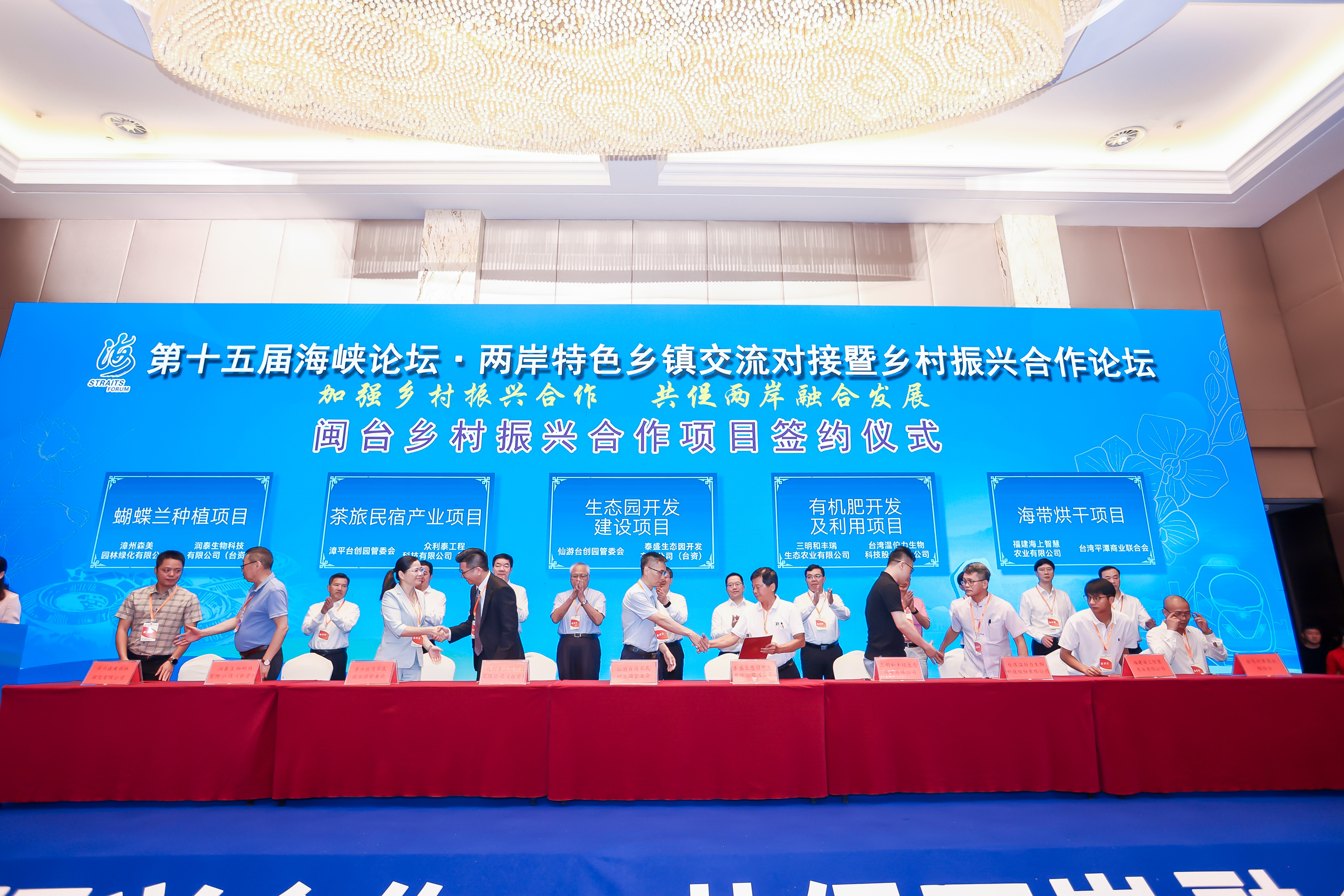 6月15日-16日,第十五届海峡论坛·两岸特色乡镇交流对接暨乡村振兴合作论坛在漳州漳浦举行。农业农村部总经济师魏百刚、福建省农业农村厅厅长陈明旺、漳州市政府市长王进足、台湾自然资源保育技术服务基金会董事长陈志清出席并致辞。论坛由福建省农业农村厅副厅长郭宋玉主持,两岸业界领导、台农台商和对接企业的代表等200多人参加。