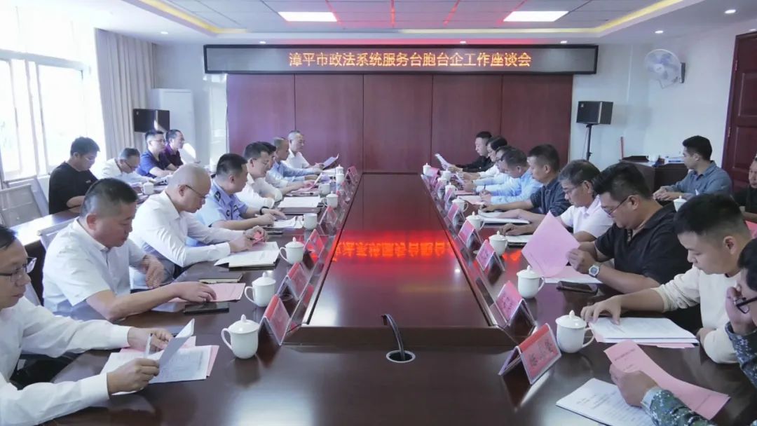 11月6日,漳平市政法系统服务台胞台企工作座谈会在漳平台创园召开,市委常委、政法委书记丘小林,市政府副市长、公安局局长肖秉康,市法院院长游庆生和相关部门负责同志、台农台企代表等参加。
