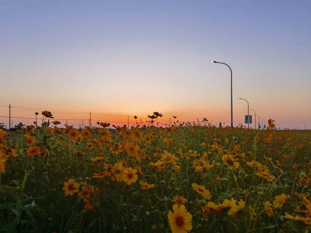 新慈湖花海端午花开正艳时!首先映入眼帘是金鸡菊,金黄的花朵在微风中摇曳生姿;与它隔路相望的是红花荞麦,绵延的花田与蓝天相接,两边花海交相呼应,吸引了一大波市民前来打卡,纵身遨游于花海之中。