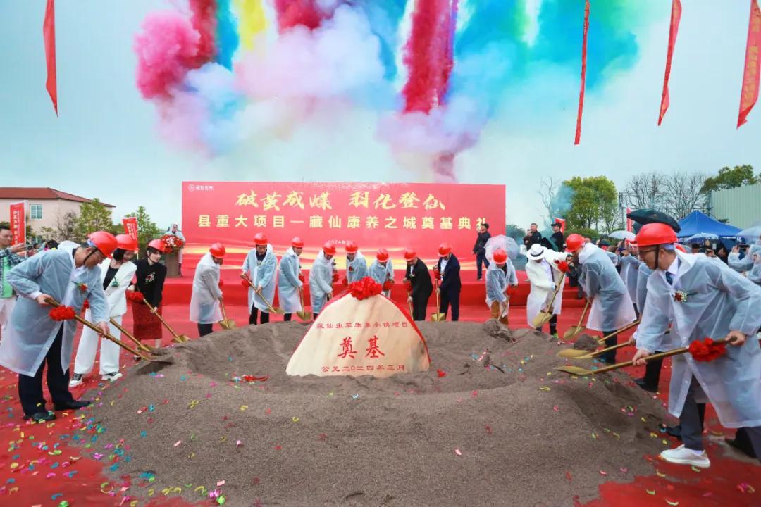 3月31日上午,藏仙康养之城奠基仪式在神仙居旅游度假区(台湾农民创业园)举行。11时18分,礼炮齐鸣,与会领导、嘉宾挥动铁锹,共同为项目培土奠基。