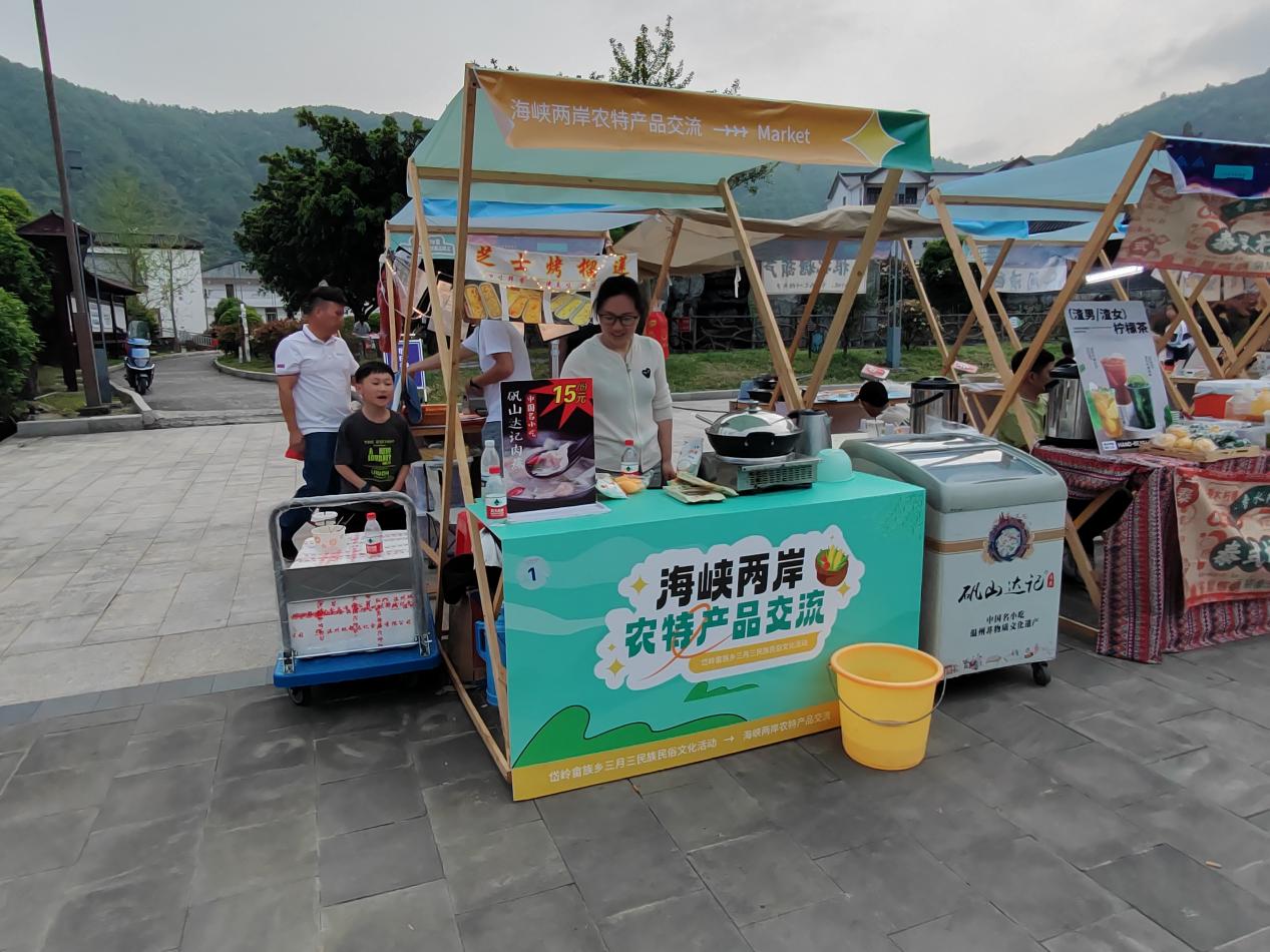 在活动现场,畲乡茶礼、竹竿舞、畲族歌曲、畲族婚嫁、民族服饰走秀等畲族风情项目,以及摇锅、蹴鞠、龙接凤等畲族传统体育项目体验展示活动逐一进行,让大家充分感受到民族文化之美。另外,在非遗传统技艺区域,游客还可现场品尝或制作乌米饭、糍粑等畲家特色美食,体验畲族服饰、手工刺绣等,感受纯正的畲乡民族风情。同时,现场特设“海峡两岸农特产品交流”摊位,邀请在苍台农商以及矾都达记肉燕等农创客同台“练摊”,促进两岸农业技术交流,为农业合作交流寻求新的机遇。
