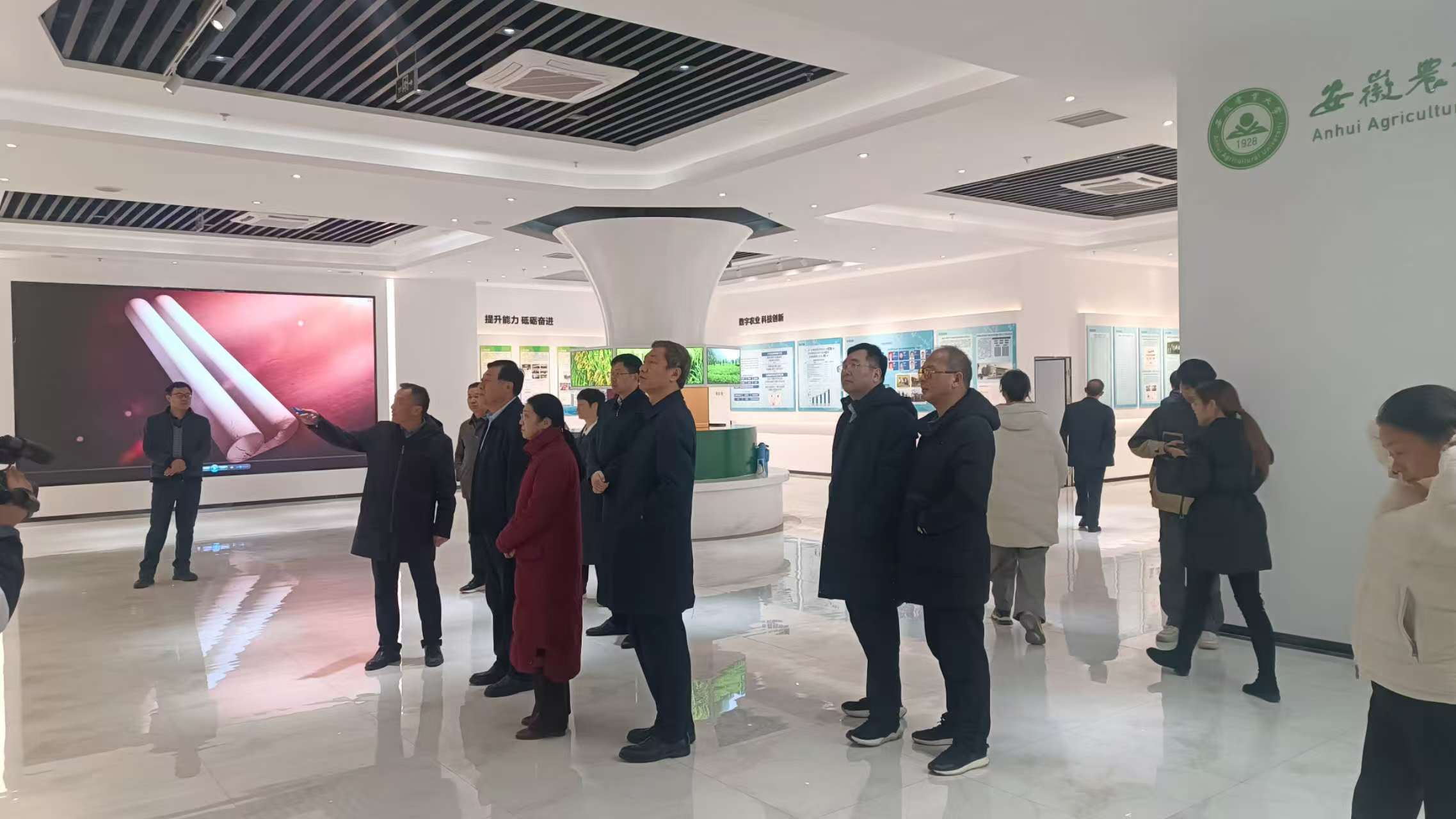 2024年12月10日下午,国务院参事,农业农村部原党组成员、副部长于康震;国务院参事室研究中心主任杨志新,吉林省政府参事、吉林省农业厅原厅长张凤春,贵州省政府参事、省农业农村厅一级巡视员向青云,四川省政府参事、省农业农村厅二级巡视员胡强,国务院参事室研究中心政策研究部主任杜姝文等一行来园区调研。安徽省政府参事室党组成员、副主任王兰,合肥市农业农村局局长刘正义,庐江县委副书记、县长周天斌,副县长俞德胜,庐江县农业农村局党组副书记郑仁山,庐江台创园党工委书记、管委会主任汪守苗等陪同调研。