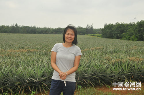 中国台湾网10月20日海口讯 当我们提出想在海口见见老朋友周才娜时,她在微信中用语音留言说,这段时间太忙,请到她的凤梨田里会面。于是,我们从海口市驾车50余公里,到达三门坡镇上,又经过一长段曲曲折折的乡间小路,才在一片郁郁葱葱的凤梨田,见到她和她的先生蔡旭升。
