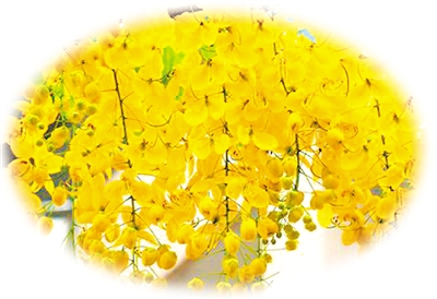 阿勃勒树中文名的由来,有一段有趣的歌谣:阿婆阿婆去散步/摇摇晃晃走不快/路边树下稍歇息/喘口气来喝口水/风吹落下黄金雨/彷佛置身于仙境/忽见地上黑棍棒/阿婆捡来当柺杖/乐得阿婆笑哈哈/阿婆乐呀阿婆乐/此树名做阿勃勒……此树原产南亚,可种植于热带和亚热带,台湾是阿勃勒的宜居之地。因此,除了苗栗,台湾很多地方都选中阿勃勒“吸金”。嘉义市有多条道路旁也种植了阿勃勒,今年嘉义推出了“金黄之恋”旅游路线,他们以独有的阿里山小火车为亮点,让游客乘坐小火车赏“黄金雨”,车程在森林铁路车库园区、北门驿、嘉义火车站之间,游客下车后有“花夜月下音乐会”,“摸彩送纯金花”等活动,将阿勃勒花经营得相当出彩。